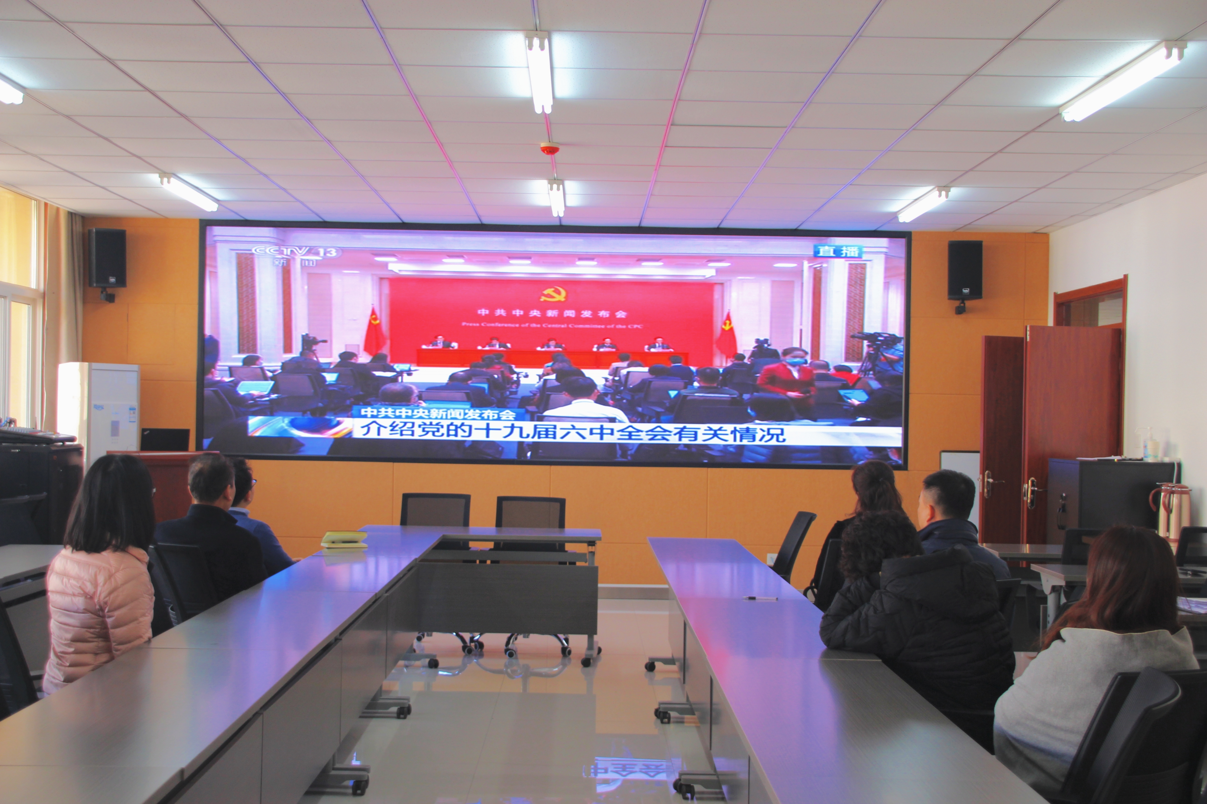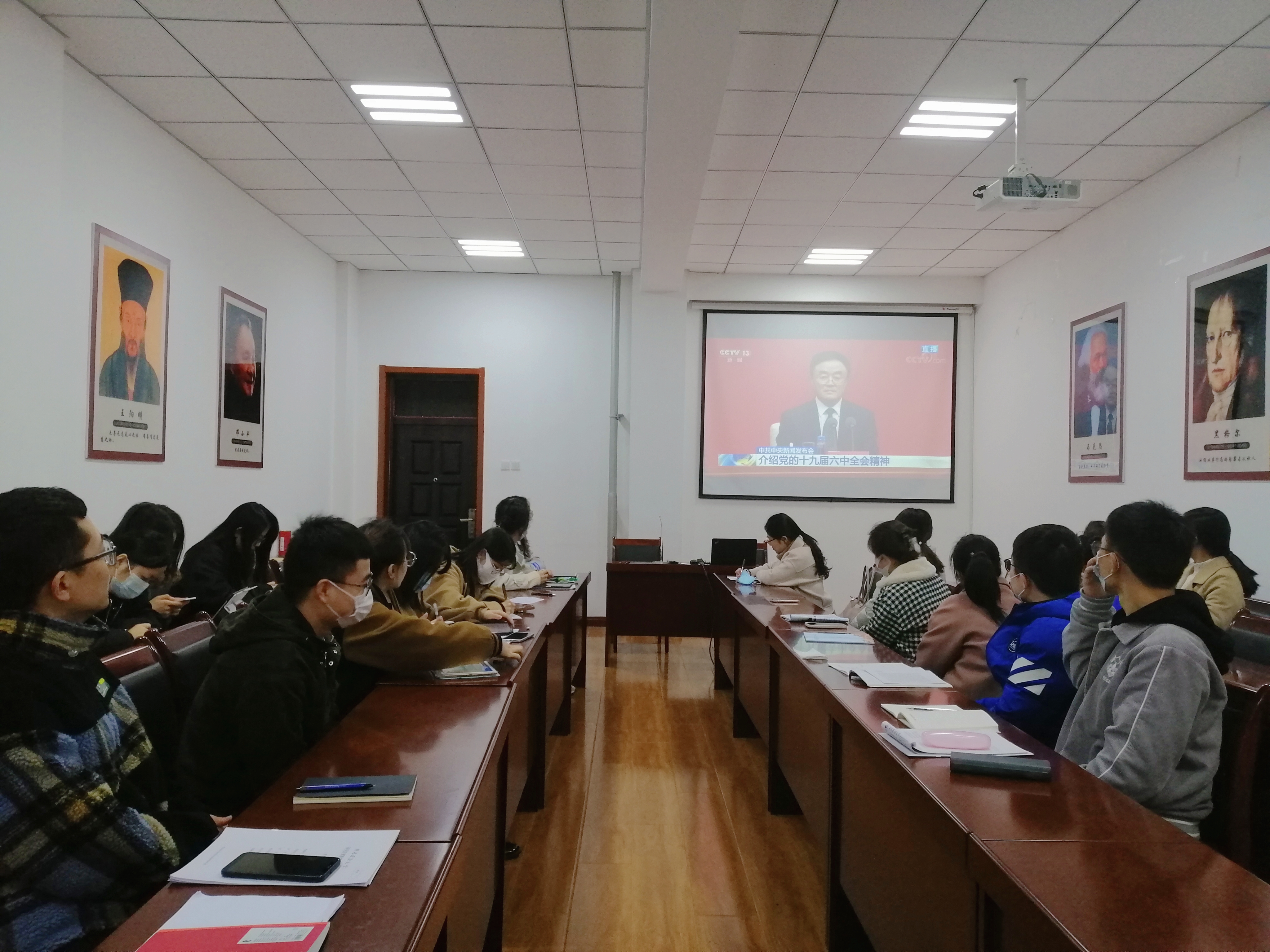11月12日上午,中共中央举行新闻发布会介绍党的十九届六中全会精神。9778818威尼斯高度重视,结合实际情况分别组织没有课的教师和全体研究生在长安校区、雁塔校区集中收看了新闻发布会直播,第一时间学习了全会精神。